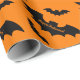 individuelle Name Wrapping Paper von Schwarz und Orange Halloween Fledermäuse. Spooky Design mit personalisiertem Namen oder Happy Halloween Nachricht. Fun Party Geschenkverpackung für Kinder und Erwachsene.