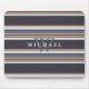 Mousepad gestreift in den staubigen Farben eines stürmischen Ozeans: so dunkelblau sieht es aus wie Kohle, stetig blau, dunkler Sand und rostig beige. Personalisieren Sie mit Ihrem Namen und Initial.