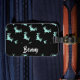 Fügen Sie Ihren Namen auf diesem Farbverlauf blaue Fledermäuse auf schwarzem Hintergrund.