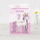 Ein süß-rosa Pony, genau wie Ihre Enkelin mit der Nummer sieben prangt! Die goldfarbenen Details sind in ihrer Mane und ihrem Schwanz gewebt. Perfekte Karte, um Ihrer Enkelin ihren 7. Geburtstag zu wünschen! Personalisieren Sie diese Karte mit dem Namen Ihrer Enkelin. (Digital gerenderte goldfarbene Farbe)