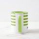 Ein personalisiertes Design zeichnet sich durch eine dynamische Anordnung abwechselnd lebendiger, grüner und knalliger weißer Streifen aus, die ein optisch ansprechendes Muster schafft, das zeitgemäß und dynamisch zugleich ist. Die Gegenüberstellung dieser Farben bildet eine lebendige und moderne Ästhetik.