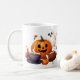 Ein wunderschönes Halloween-Tasse mit einem niedlichen, Cartoon-artigen Geist, der perfekt zum Herbstkaffee oder Tee passt. Ideal für Halloween-Dekoration präsentiert sich diese Keramik-Tasse mit einem Geist, Kürbis und Fußball. Ideal für Halloween-Partys, Trick- oder Leckereien-Abende und gemütliche Herbstvibes, die es zu einem perfekten Geschenk für Halloween-Liebhaber machen.