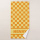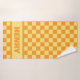 Dieses kontrastorange und gelbe Schachbretthandtuch kann mit einem Namen versehen werden, was es zu einem besonderen personalisierten Geschenk macht. Ob Sie zum Strand gehen, am Pool abkühlen oder im Park ein Picknick machen, diese Handtücher sind lebendig, nützlich und stilvoll. Diese Handtücher dienen nicht nur dem praktischen Zweck, sondern sind auch ein herzliches Geschenk, das man dem Namen des Empfängers anpassen kann.