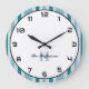 Individuelle Monografie Coastal Stil Rundwanduhr, ein großartiges personalisiertes Geschenk für frische Weds. Blaue und aquamarine Streifen und ein aquamarines Monogramm. Sieht frisch, modern, elegant aus.