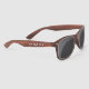 Diese Sonnenbrille mit einem Holzrahmen aus Imitat weist ein minimalistisches Design auf, das auf beiden Seiten einen individuell einstellbaren weißen Namen oder Text aufweist.