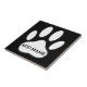 Weiße Version des Pfotendrucks. Schwarzer Hintergrund Bearbeiten Sie den Text, um diese Keramik mit dem Namen des Hundes personalisiert zu machen.