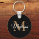 Erstellen Sie Ihren eigenen personalisierten schwarzen runden Schlüsselanhänger mit Ihrem benutzerdefinierten, handgeschriebenen Skriptnamen und Monogramm.