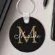 Erstellen Sie Ihre eigene personalisierte schwarz-runde Schlüsselkette mit Ihrem benutzerdefinierten handgeschriebenen Skriptnamen und Monogramm.