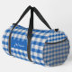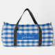 Individuelle Name Monogramm Duffle-Tasche Dieses einzigartige Duffel-Design ist whimsical und stilvoll. Der Hintergrund besteht aus einem abstrakten, klassisch blauen Hintergrund. Auf der Vorderseite steht Ihr individuelle Name oder kurzer Text in stylish weißem Schrift auf einem passenden blauen Band. Alle Farben in diesem Design können individuell angepasst werden und Sie können die Tasche mit Ihrer Wahl des Schriftartes im Bereich Design Tool weiter personalisieren.