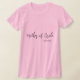 Der T - Shirt der Frauen wird in einem Crew-Hals und kurzen Ärmeln Stil in Rosa mit schwarzem Farbtext gezeigt: Mutter der Braut und ein benutzerdefinierter Beispielname. Passen Sie diesen Artikel an und ändern Sie den Beispielnamen in Ihren Namen oder kaufen Sie, wie es ist.