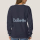 Navy Blue Women's Basic Sweatshirt Dies ist ein Navy Blue Women's Basic Sweatshirt. Im Komfort dieses klassischen Pullovers können Sie sich für sportliche Aktivitäten im Freien begeistern. Es ist zugleich warm und strapazierfähig und ein wahres Basis-Kleidungsstück das sich lange bewährt. Wählen Sie ein Design aus Zazzle's Marktplatz oder passen Sie es an, um es zu Ihrem eigenen zu machen! Das marineblaue Sweatshirt ist mit dem Namen einer Frau, Collette, versehen. Der Name ist eine Chambray Comfort Farbe hellblau Farbe. Der Name Collette ist vorne und hinten im Sweatshirt. Sie können den Namen ersetzen, indem Sie auf den Link Personalisieren klicken. Das Sweatshirt passt sich der Größe an. Das Sweatshirt ist eine Mischung aus Polyester aus Baumwolle. Das Sweatshirt ist mit Set-in-Ärmeln und Doppelnadelnähten, Armlöchern und Bottom-Band ausgestattet, um eine lange Haltbarkeit zu gewährleisten. Der Stoff wird importiert. Die Stoffpflege-Anweisungen sind maschinelle Waschen kalt und trocken niedrig.