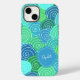 Das Design zeichnet sich durch ein niedliches, skurriles, kreisförmiges Muster in Blau- und Grüntönen aus. Anpassen mit Namen oder benutzerdefiniertem Text in Weiß auf einer passenden blauen Form mit einfacher Vorlage.