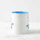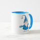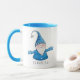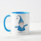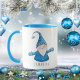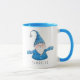 Niedliche personalisierte Weihnachtszeit-Tasse mit fröhlichem Gnome in Blau.