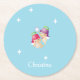 Individuelle Name niedliche Engel auf blau Runder Pappuntersetzer