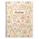 Personalisiertes Namensspiralheft mit einem Wasserfarbenmuster bemalt moderne Boho Regenbögen in erdigen neutralen Tönen.