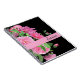 Notebook mit schwarzer Hintergrundfarbe mit einem schönen rosa Rosengrafik und einem Namensbeispiel. Passen Sie dieses Element an und ändern Sie den Namen in Ihren Namen.