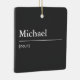 Personalisiertes modernes Weihnachtsschmuck mit einem individuelle Name oder Wort auf der Vorderseite in minimalistischer Weißtypografie und der Definition dieser Person oder des Wortes auf der Rückseite. Passen Sie den Text mit den Vorlagen an, aber wenn Sie das Design-Tool eingeben, können Sie auch die Hintergrundfarbe ändern, um Ihrem Lieblingssortiment zu entsprechen. Einzigartiges Weihnachtsgeschenk für ein Familienmitglied wie Ehemann, Ehefrau, Tochter, Sohn, Onkel, Tante oder die Großeltern, aber auch ein großartiges Geschenk für Ihren besten Freund oder Ihren Lieblingskollegen für geheimen Santa. Oder wie wäre es mit einem einzigartigen Ornament für Ihren eigenen Baum? Definieren Sie ein aussagekräftiges Wort oder Begriff und schaffen Sie ein wirklich besonderes Weihnachtsschmuck in sauberem und einfachem Design, sicher zu heben.