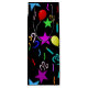 Fügen Sie Ihren Namen zu diesem Party-Design mit Ballons, Sternen und Konfetti auf schwarzem Hintergrund.