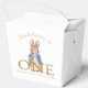 Personalisieren Sie dieses Peter Kaninchen Design und fügen Sie den Namen Peter das Kaninchen First Birthday Vielen Dank für das Kommen in Gold Text