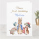 Personalisieren Sie dieses Design und fügen Sie einen Namen Peter der Rabbit ersten Geburtstag Happy First Birthday Text