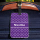 Individuelle Name Polka Dot Dark Lila und weiß Gepäckanhänger