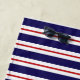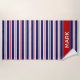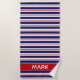 Striptes Strandtuch aus Cabana mit blau, rot und weiß gestreiften Mustern. Personalisieren Sie sich mit Ihrem Namen.