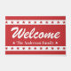 Feiern Sie den Amerikanische Unabhängigkeitstag und die Sommerzeit im patriotischen Stil! Diese benutzerdefinierte Türmatte verfügt über eine USA-Fahne inspiriert Design in rot und weiß mit einem Rand von Sternen und das Wort "Willkommen" in einem großen weißen dekorativen Skript. Personalisieren Sie diese, indem Sie Ihren Namen, Familiennamen oder speziellen Text hinzufügen.