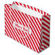 Dieser "Individuelle Name Red/White Stripes Large Gift Bag" weist rote und weiße Streifen auf und kann mit dem Namen des Empfängers personalisiert werden. Machen Sie Ihre Geschenke noch unvergesslicher mit dieser stilvollen und anpassbaren Geschenktasche.