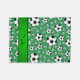 Moderne und trendige Individuelle Name Sportarten zufällige schwarz-weiße Fußbälle Muster grünen Hintergrund und mit grünem Streifen personalisiert mit nur Ihren Namen Geschenke oder Monogramm Geschenke oder Ihre Initialen für ein einzigartiges Geschenk. Sportgeschenke Ideen für Männer, Jungen und Mädchen. Ideal zum Geburtstag.