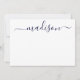Modernität und Eleganz mit unserer modernen Simple Navy Blue Typografy Name Script Note Card. Diese Karte bietet eine elegante marineblaue Farbe und eine personalisierte Schriftzypografie und bietet eine zeitgemäße Leinwand für Ihre Botschaften. Ideal, um Gefühle zu äußern oder stilistische Noten zu versenden, um Ihrer Korrespondenz eine Touch Eleganz hinzuzufügen.