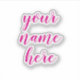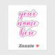 Custom Modern Chic Name Text Script Wasser Flasche Klarkleber mit Ihrem personalisierten Text in einem niedlichen und eleganten kalligraphischen Schriftart. Der Aufkleber ist in einem lebhaften Neonrosa gehalten, der Stil des Schriftartes und die Farben sind vollständig anpassbar.