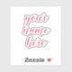 Custom Modern Chic Name Text Script Wasser Flasche Klarkleber mit Ihrem personalisierten Text in einem niedlichen und eleganten kalligraphischen Schriftart. Der Aufkleber ist in einem lebendigen niedlichen gürtelrosa, Schriftart Stil und Farben sind vollständig anpassbar.