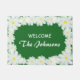 Individuelle Name und Farbe dunkle Blume Blumenmatte kleine Türmatte. Machen Sie Ihre eigene mit Monogramm Innen-/Außentür mit individueller Hintergrundfarbe und Text. Fügen Sie Ihre eigene Begrüßungsnachricht, Familienname, Nachname, Anfangsbuchstaben oder lustiges Zitat hinzu. Niedliche Geschenkidee für neue Zuhause / Hauswärmung, Hochzeitsort, Geschäft, Shop, Firmenbüro, Business etc. Stilvolle Skripttypografie. Anpassbare Vorlage. Erstellen Sie Ihre eigene klassische Blumenmatte / Teppich für Eingangstür / Eingang oder Halle. Individuell gestaltbare Wohngestaltung / Dekoration für Ihr stilvolles Haus. Niedliche Geschenkidee für Ehepaare oder frisch gezapfte. Inspiriert von der Natur.