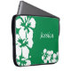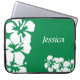Ein hübscher Laptop-Ärmel mit einem maßgeschneiderten Blumendesign aus Weiß-Hibiskus auf einem Smaragdgrünen Hintergrund. Der Name kann mit der Option "Anpassen" geändert werden!