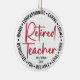 Heilige Weihnachtsschmuck mit Lehrqualitäten: warm, mitfühlend, kümmernd, liebevoll, freundlich, treu, zuverlässig, unterhaltsam, engagiert. Handschrift Skript-basiertes Design in schwarz und rot. Fügen Sie den Namen Ihres Lehrers und das Rentenjahr hinzu. Das ist das perfekte Geschenk für Ihren Lieblings-Lehrer, um seine ersten Weihnachten als Lehrer im Ruhestand zu feiern.