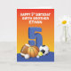 Ein 5-jähriger Junge wird diese Karte mit einer Sammlung von Sportbällen auf der Vorderseite und einer unterhaltsamen Sportbotschaft auf jeden Fall mögen. Das Wichtigste ist, dass Sie dies mit seinem Namen und seiner Beziehung personalisieren können, um ihn zu einem glücklichen 5. Geburtstag zu begrüßen.