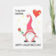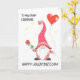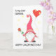 Eine lustige Valentinstag-Grußkarte, mit der Sie auf der vorderen Abdeckung personalisieren können. Ein niedliches, in Rot gekleidetes Gnome, das eine rote Rose des Single in der einen Hand und einen herzförmigen roten Ballon in der anderen Hand hält. Dieses beliebte, skandinavische Gnome ist klein und chubby, mit einem riesigen weißen Bart, der bis zum Boden reicht, und einem hohen Hut, der über seine Augen gezogen wird, sodass alles, was wir von seinem Gesicht sehen können, seine große, rosa Nase ist. An der Spitze seines Hutes hängt ein dekoratives Herz, und seine goldfarbene Hassband hat rote X's für Küsse um sich herum. Die Titelgrüße in einem Schriftart mit schwarzem Spaß lautet: '(Platz, um den Namen hinzuzufügen), HAPPY VALENTINE'S DAY!' Der Hintergrund ist weiß mit kleinen, blassen goldfarbenen Herzen. Die Insider-Nachricht ist nur ein Vorschlag, und Sie können sie einfach ändern oder ganz löschen, wenn Sie eine "leere Innenseite" Karte suchen.