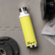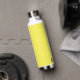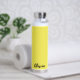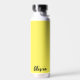Diese isolierte Wasserflasche ist in Weiß mit einer sonnigen gelben Akzent-Farbe und einer individuelle Name-Probe dargestellt. Passen Sie dieses Element an, und ändern Sie den Beispielnamen in Ihren Namen.
