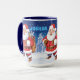 Individuelle Name Weihnachtskaffee Tasse, Jolly Santas. Combo blau.
