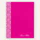 Elegantes Fuchsia Notizbuch mit einem weißen Vektormuster mit einem anpassbaren Namen und Jahr auf dem Cover. Ideal für Journalisten, Schulen, Planungen oder als nachdenkliches personalisiertes Geschenk.