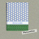 Golfbälle erzeugen ein helles Polka Punktmuster auf einem blauen Hintergrund sowohl auf der Vorderseite als auch auf der Rückseite dieses Notebooks. Auf der Vorderseite werden Golfclubs in einem Komplementärmuster auf grünem Hintergrund verwendet, und es gibt einen weißen Streifen für Sie, um mit einem Namen oder einem anderen Text zu personalisieren.