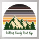 Stellen Sie sich Ihr eigenes Reiseplakat für Familienausflüge vor, um an eine Reise durch die Natur in diesem Sommer oder Herbst zu erinnern. Personalisieren Sie mit Ihrem Nachnamen unter dem grünen Wald von Bäumen und dunklen Berg Sonnenuntergang für einen kühlen Urlaub zu bleiben, um für Ihre Outdoor-Gruppe.