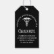 Dieses individuelle schwarze Geschenk-Tag für die Abschlussfeier der medizinischen Fakultät enthält eine klassische weiße Typografie unter einem medizinischen Caduceus und Ihren Hochschulnamen für den Jahrgang 2026. Passen Sie es mit Ihrem Abschlussjahr unter der eleganten Kalligrafie an, um großartige persönliche Geschenke für Universitätsabsolventen für Krankenpfleger oder Ärzte zu erhalten.