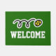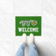 Individuelle Tennisball-Design Begrüßung vor der Tür. Machen Sie Ihre eigene mit Monogramm Innen-/Außenmatte mit individueller Hintergrundfarbe und Text. Fügen Sie Ihre eigene Willkommensnachricht, Familienname, Nachname, Anfangsbuchstaben oder lustiges Zitat hinzu. Fun Geschenkidee für neue Klub, Zuhause / Hauswärmung, Laden, Shop, Firmenbüro, Business etc. Moderne Sporttypografie mit gekreuzten Tennisschlägern. Anpassbare Vorlage. Erstellen Sie Ihre eigene klassische Einstiegstafel / Teppich für Eingangstür / Eingang oder Halle. Wohngestaltung / Dekoration für Ihr Haus individuell. Geschenke Ideen für Tennisspieler, Fan, Trainer etc.. Grün oder Farbe Hintergrund.
