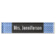 Dieses Schreibtischnummernschild-Ausrüstungsbeschreibungen, die ein vieles Mustermiteinbeziehen Blau punktiert,/einkreist. Es kennzeichnet auch einen personalisierten Namen in Weiß farbigem Text innerhalb eines Dunkelheit farbigen Bereichs. Es könnte auf dem Schreibtisch eines Lehrers, des Erziehers, des Professors, des Doktors, des Rechtsanwalts, oder irgendeines beruflichen anderen möglicherweise verwendet werden. [~Z0000047]