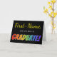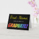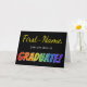 Dieses Abschlussglückwunschgrußkarten-Ausrüstungsbeschreibungen ein personalisierter Name und die Mitteilung "Sie sind jetzt ein ABSOLVENT!". Die Buchstaben des Wortes "GRADUIEREN!" haben Sie einen Spaß, inspiriertes Steigungsmuster des Regenbogens Spektrum. Die inneren Eigenschaften eine personalisierte Mitteilung. Eine Grußkarte so wäre möglicherweise eine Spaßweise, einen Studenten zu bestätigen, der vor kurzem von der Highschool, von der Uni, von der Universität oder von irgendeinem anderem Programm graduiert hat.