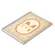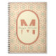 Modernes Retro Monogram Design - Individuelle Name & Initial mit geometrischem floralen Hintergrund Dieses fett-stylische Monogramm Design zeichnet sich durch eine große Winkelausführung aus, gepaart mit einem minimalistischen Skriptnamen. Alles Set in einem warmen ovalen Rahmen. Der Hintergrund zeigt eine sanfte Retropalette mit geometrischen Blumenmustern in Creme, Koralle und Beige, die dem Design ein Vintag inspiriertes und gepflegtes Ambiente verleiht. Fühlen Sie sich frei zu personalisieren, indem Sie den Initial und den Namen ändern.