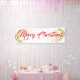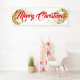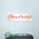 Dieses Holiday Banner wird im Indoor-Stil gezeigt, Shown in White mit Red "Merry Christmas" extravagantes Drehbuch mit zwei goldaussehenden Wirbel von Sternen auf jedem Ende.
