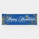 Dieses Urlaubssaal wird im Innenstil gezeigt. Wählen Sie aus dem Innen- oder Außenbereich, mit oder ohne Kräutern. In Blau mit weißem Text "Happy Hanukkah" in einem extravaganten Drehbuch mit zwei goldfarbenen Wirbel von Sternen auf jedem Ende gezeigt. Passen Sie an oder kaufen Sie nach Ihren Vorstellungen.