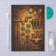 Detailed steampunk elements sheet featuring an assortment of vintage industrial components, arranged against a textured, aged metal background. The collection includes copper pipes, pressure gauges, valves, cogs, gears, and mechanical fittings, each rendered with warm metallic tones and subtle highlights that give a realistic, dimensional feel. The elements are thoughtfully spaced, making them ideal for cutting, layering, and recombining in creative projects. From curved pipe sections and valve wheels to intricate gear clusters and small mechanical connectors, each piece offers versatility for building custom steampunk scenes or enhancing existing designs. This sheet works perfectly as a standalone industrial artwork or as a coordinating set to accompany steampunk clocks, machinery designs, or mixed media compositions. Artwork similar to a detailed industrial illustration combined with vintage steampunk collage elements.